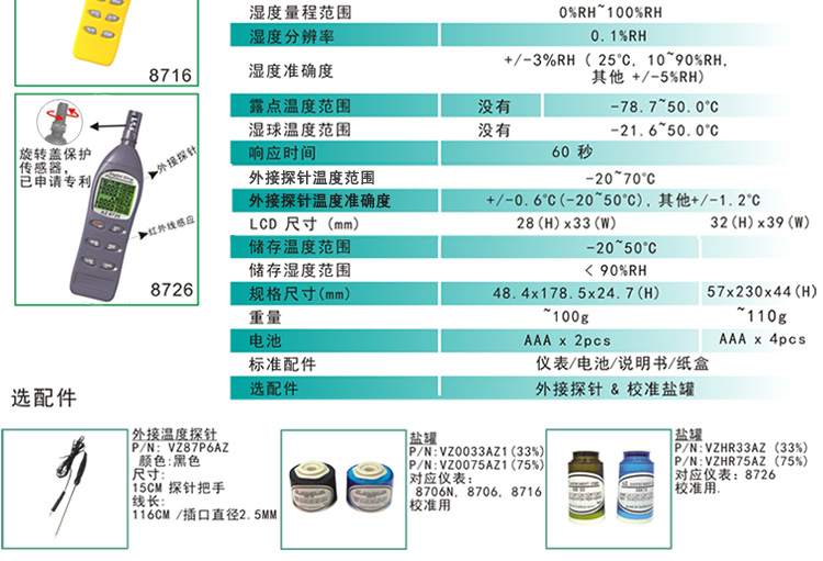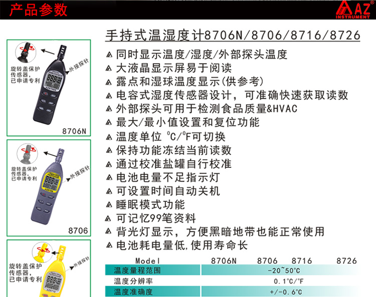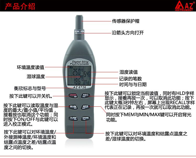 露点温湿度测试仪 台湾衡欣牌AZ8726型露点/湿球/温湿度计