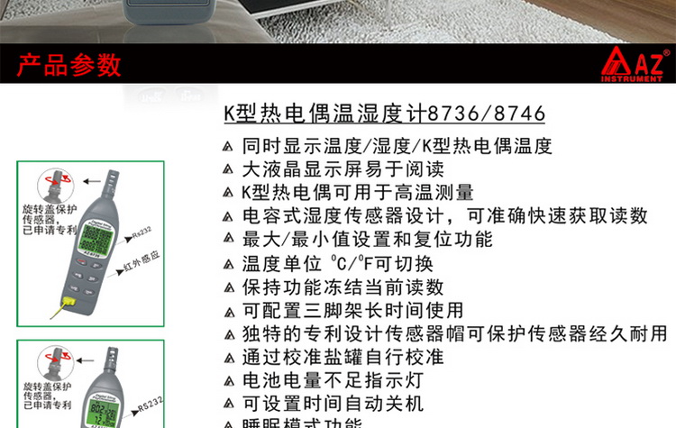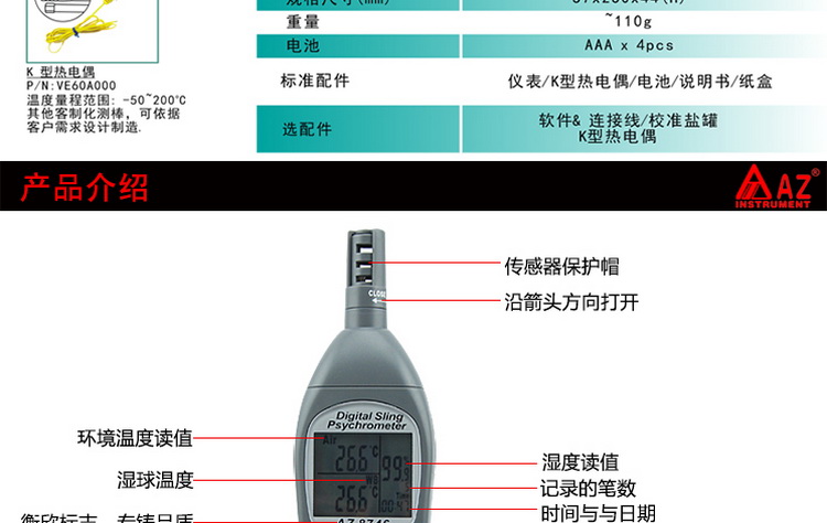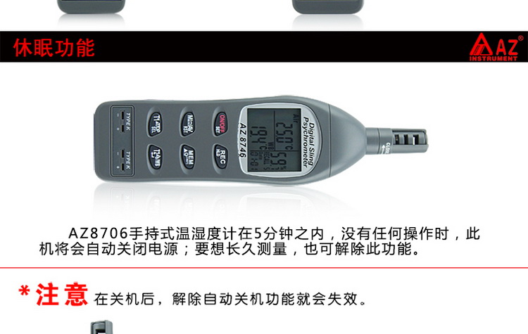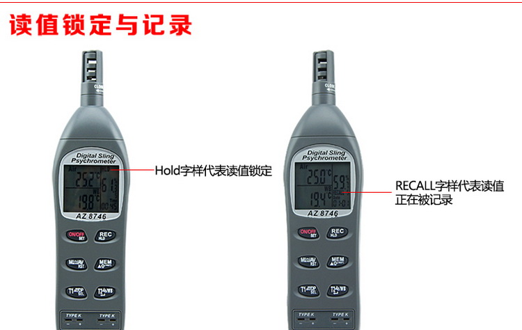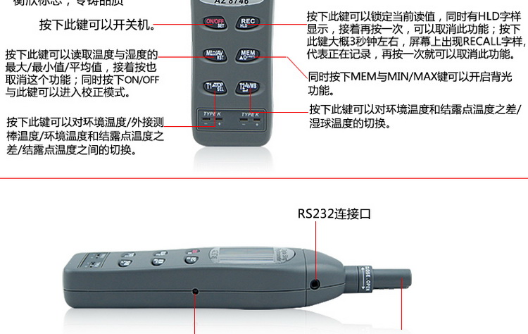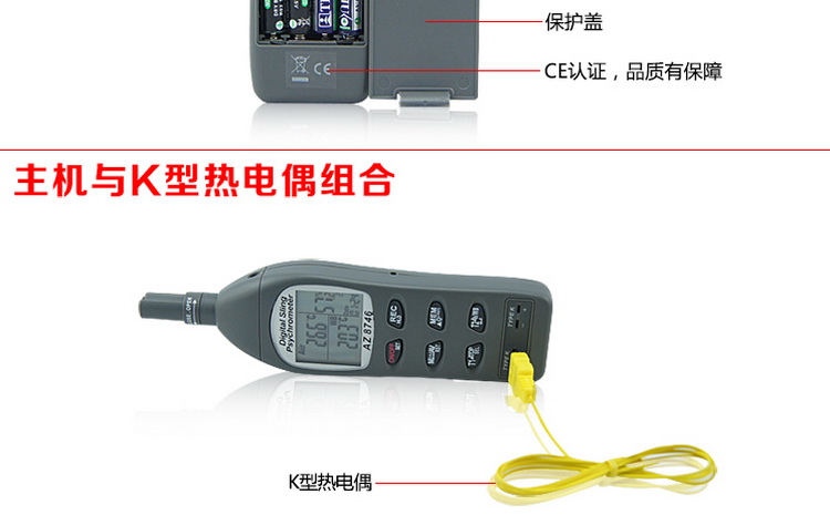 衡欣 AZ8746 工业温湿度计露点计 湿球温度外接K型热电偶测温仪