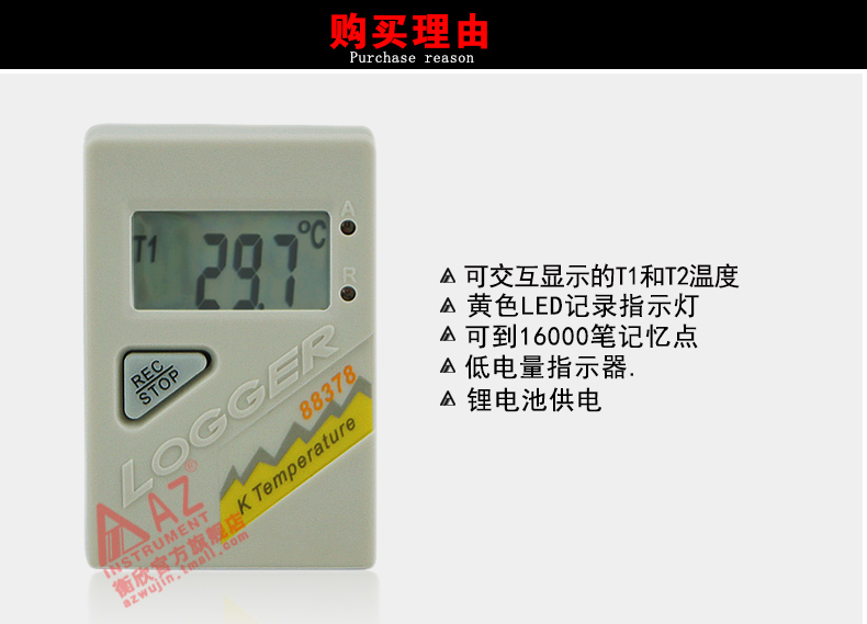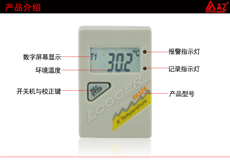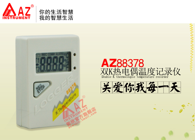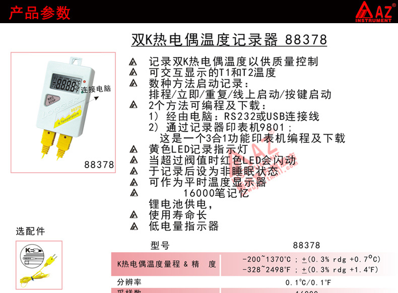 衡欣 AZ88378双通道热电偶温度自动记录仪 K型热电偶温度计带报警
