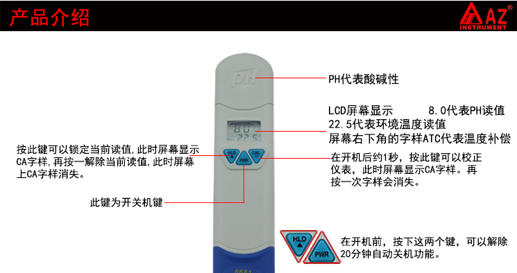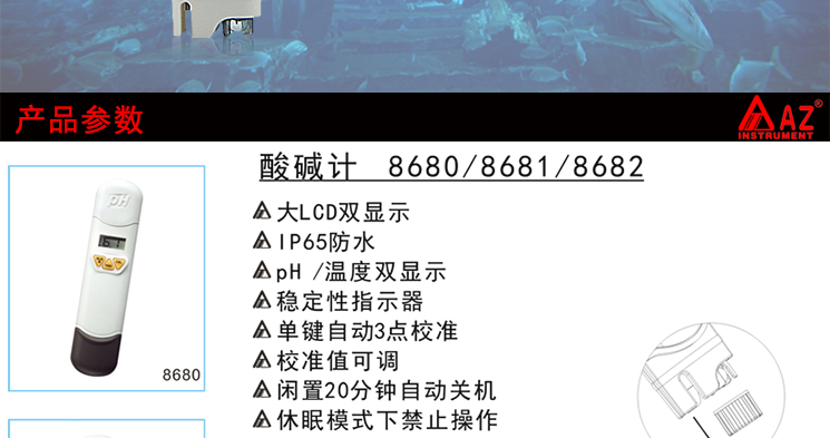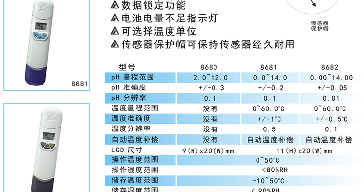台湾衡欣 AZ8681 ph测试笔 ph测试计 ph值测试仪ph计酸碱度带温补