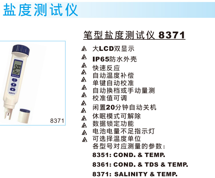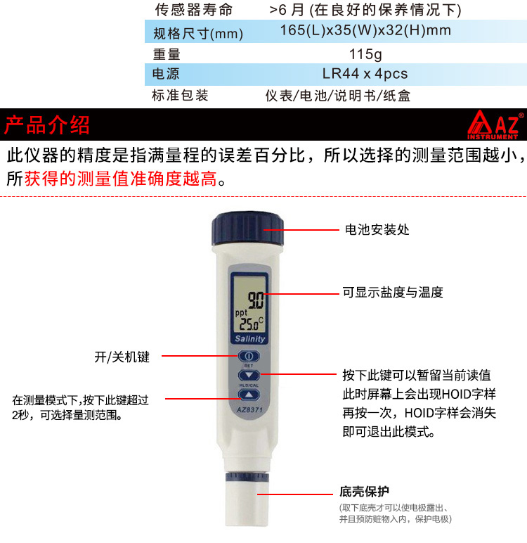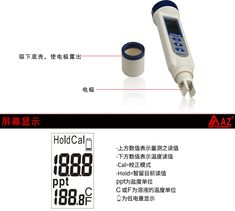 台湾衡欣 AZ8371盐度计 海水比重计咸度计 盐度仪 数显盐度表养殖