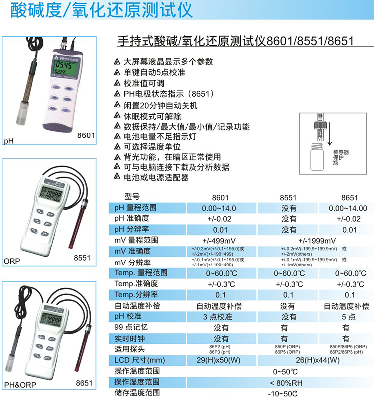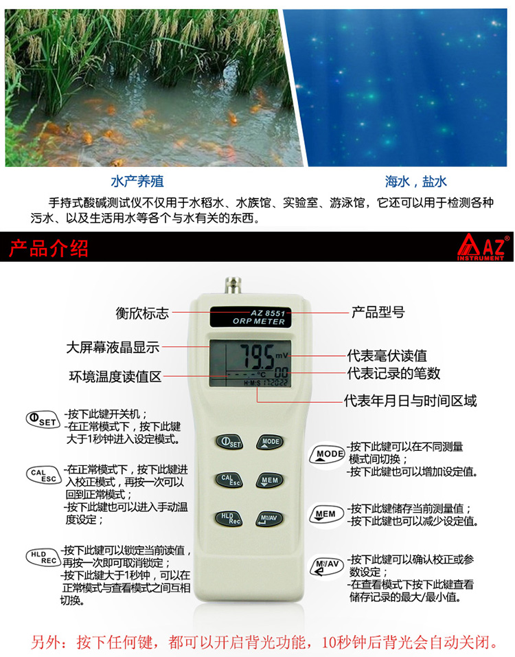 台湾衡欣 AZ8551高精度氧化还原电位计 手持ORP温度测试计检测仪
