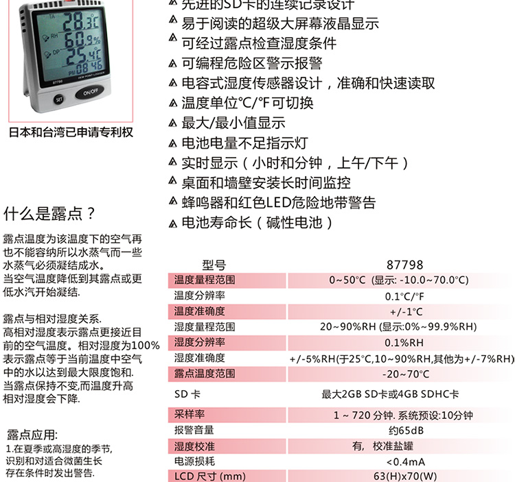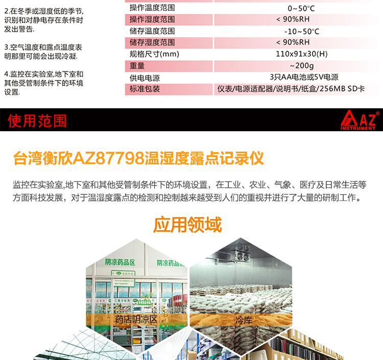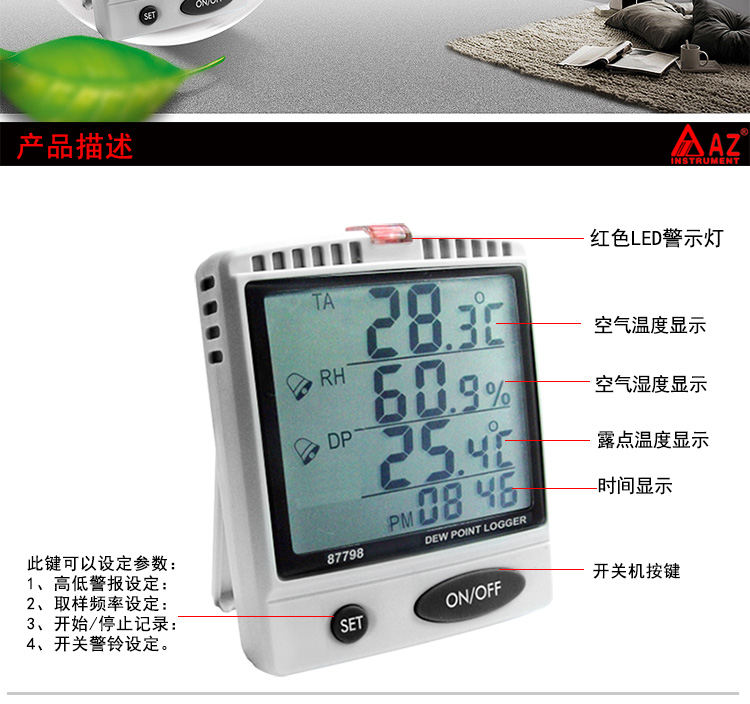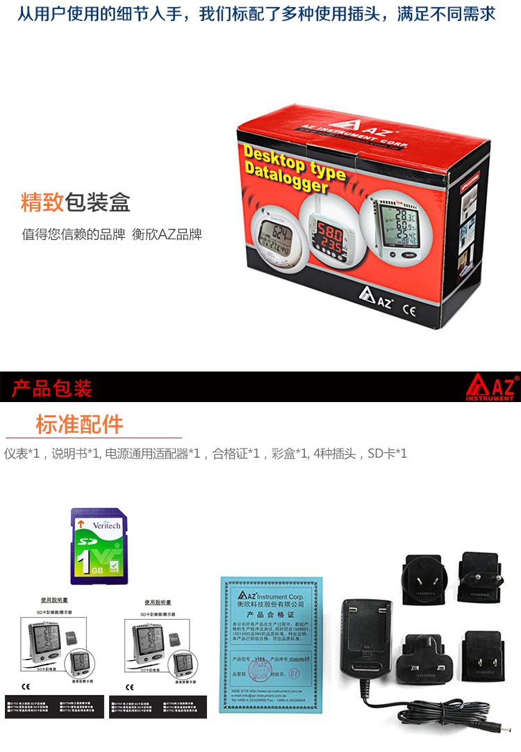 台湾衡欣桌上型温湿度露点SD卡记录器AZ87798
