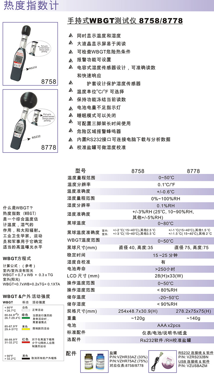 衡欣黑球温度计热度指数仪 温度测试仪/记录仪AZ8758热中暑指数计