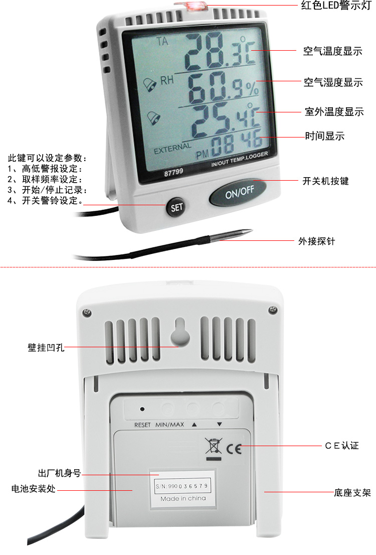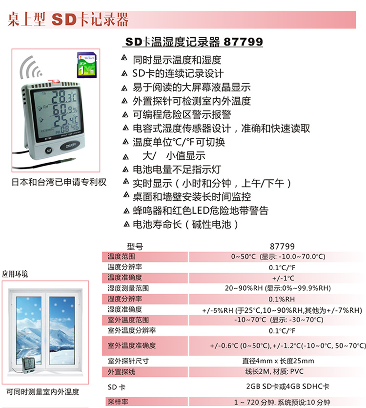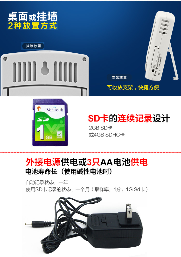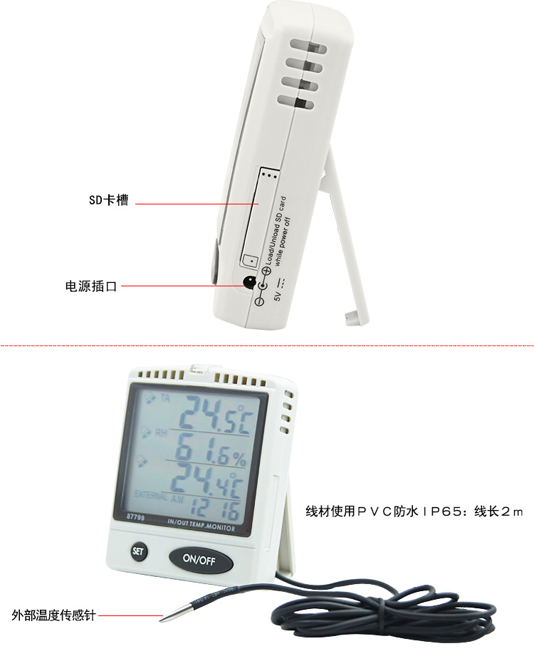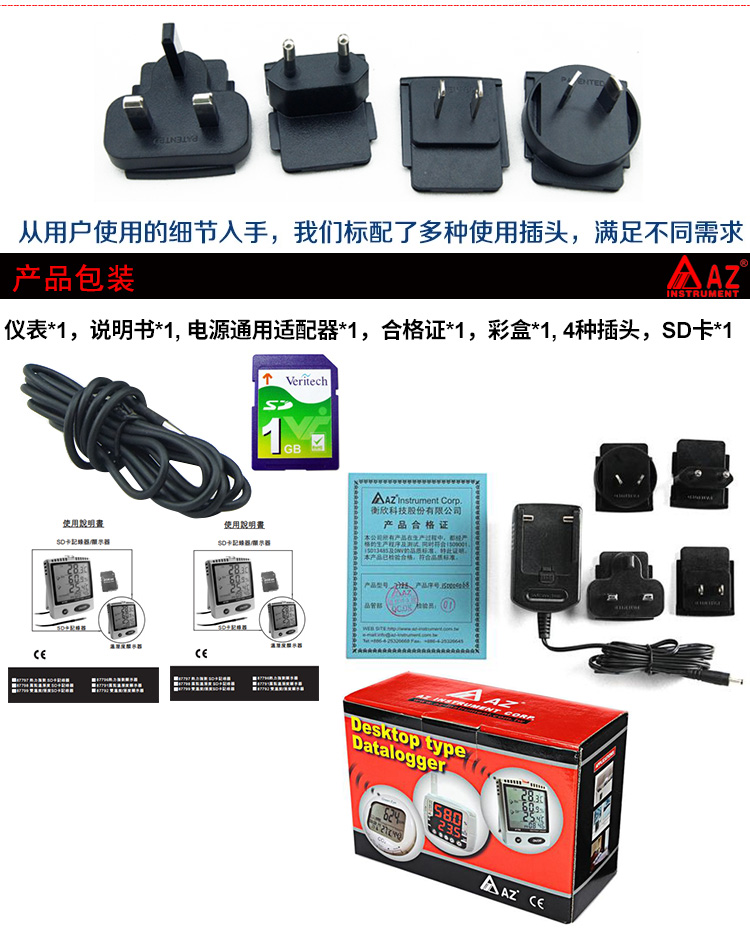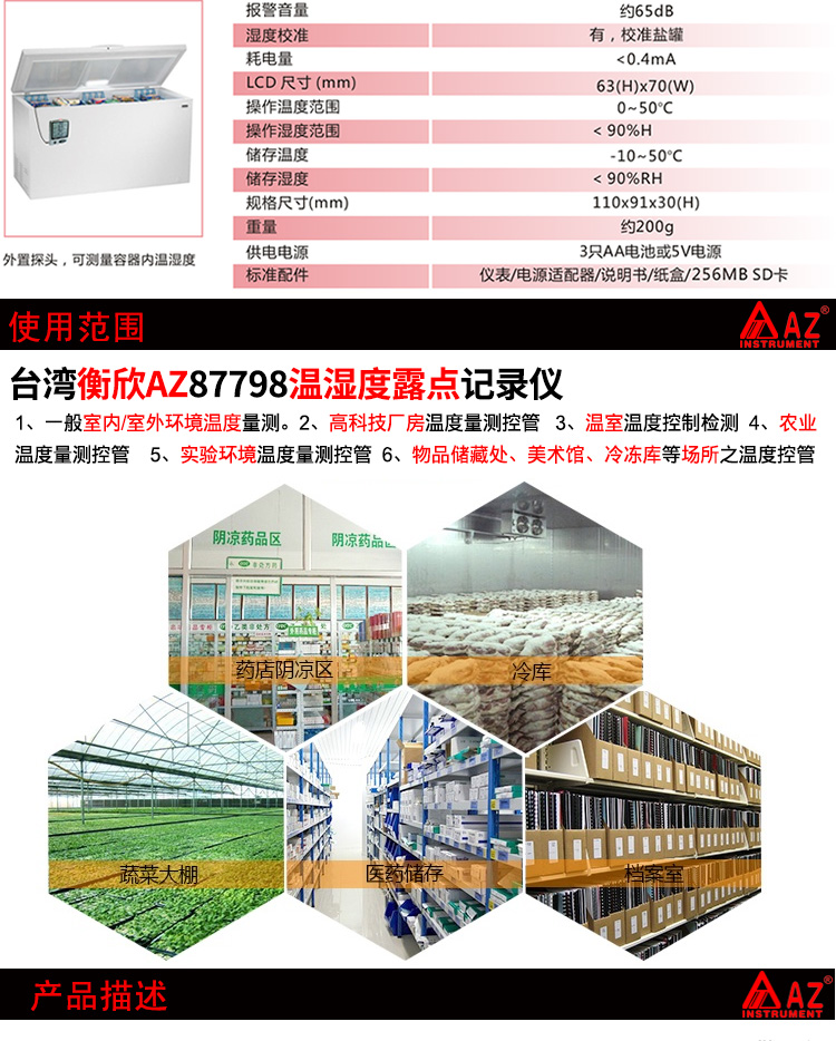衡欣 AZ87799温湿度记录仪双温度/湿度SD卡记录器工业桌上壁挂型