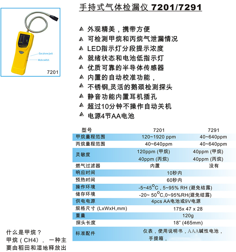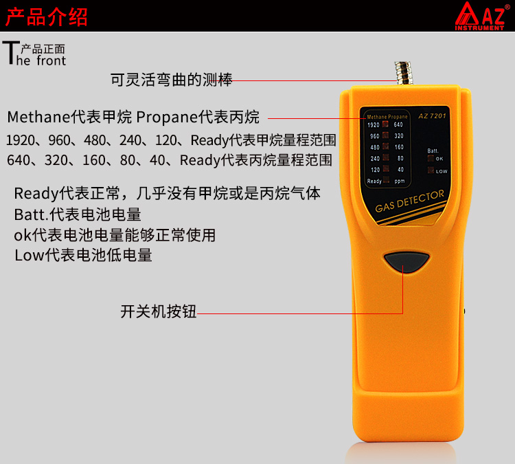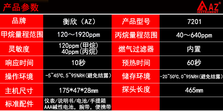 台湾衡欣 AZ7201手持式甲烷丙烷泄漏检测仪 可燃气体检测仪报警器