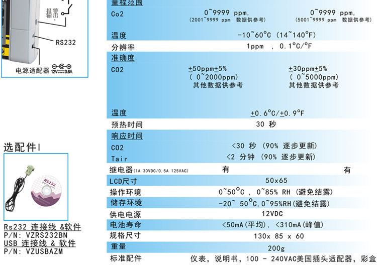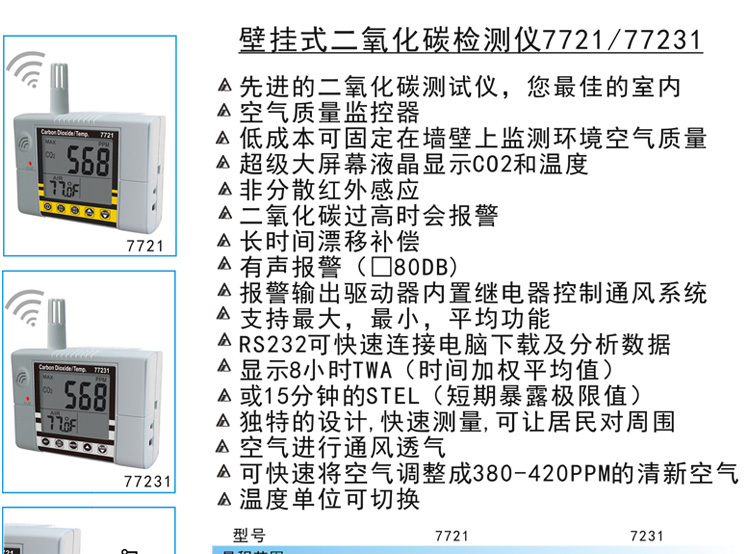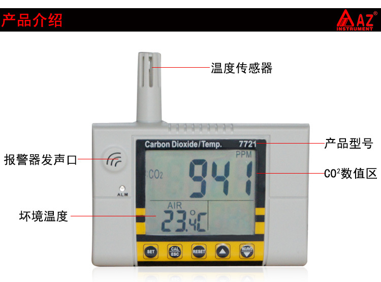 衡欣 AZ7721室内空气质量检测仪 二氧化碳检测仪 二氧化碳报警器