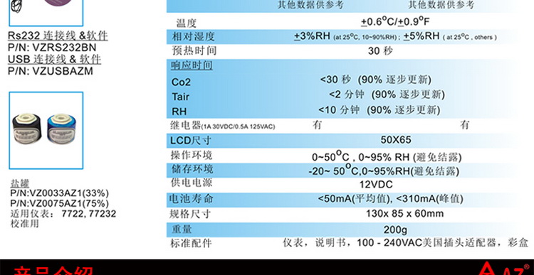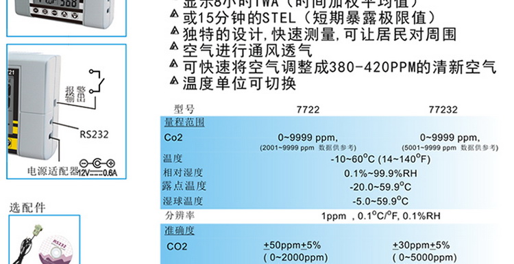 台湾衡欣二氧化碳侦测计AZ7722二氧化碳测试AZ-7722