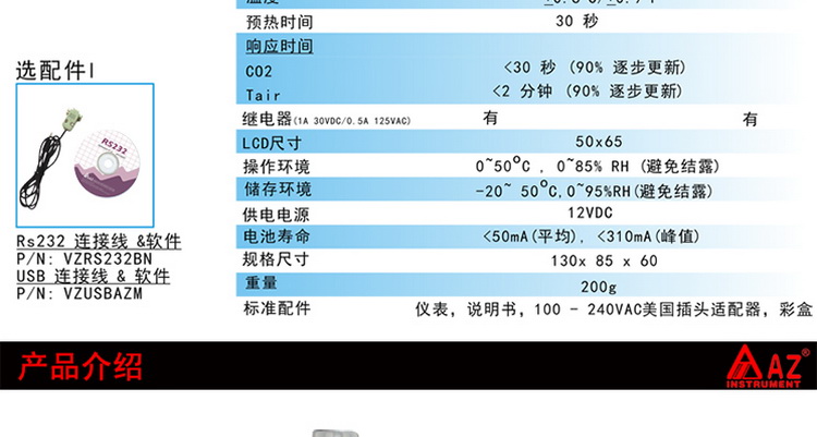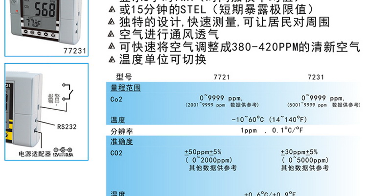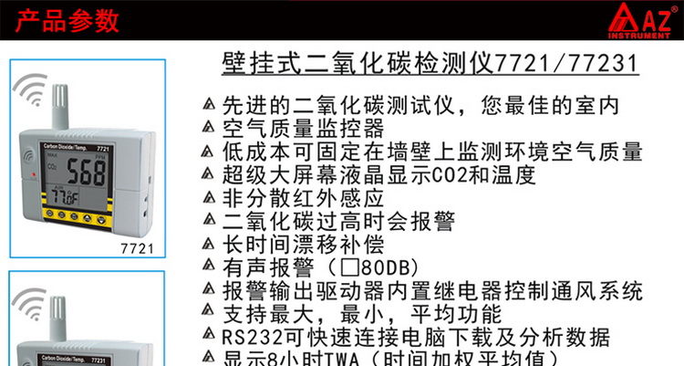 台湾衡欣原装 AZ-77231大屏幕壁挂式二氧化碳测试仪含温度