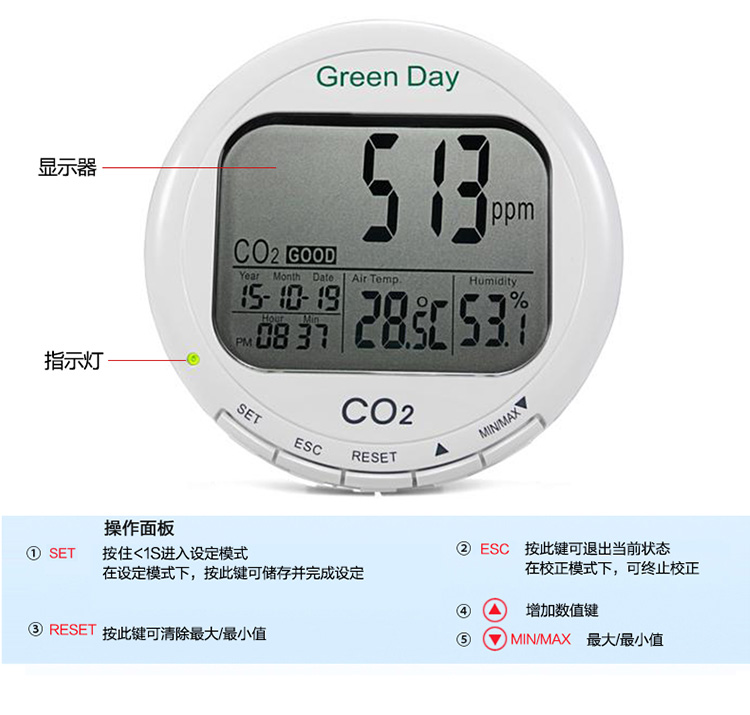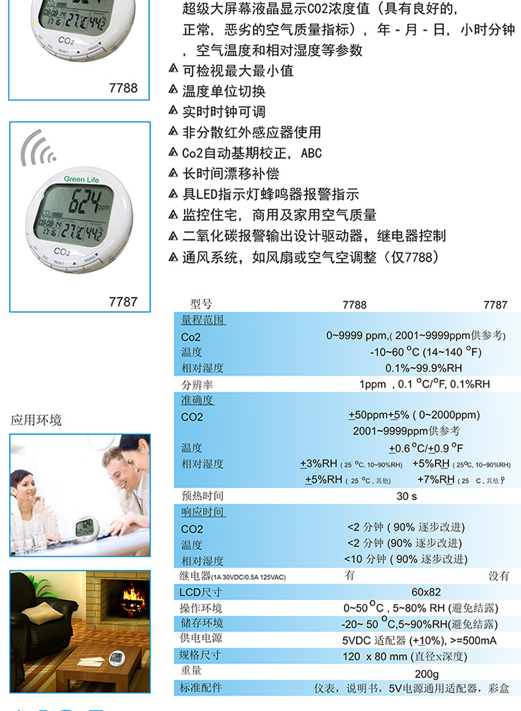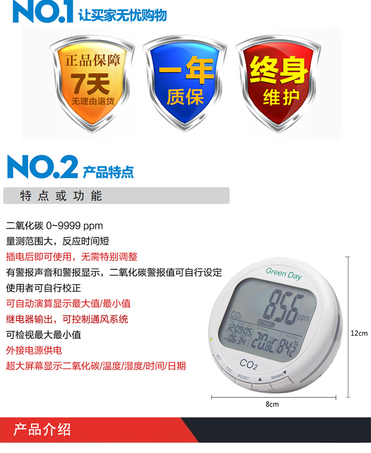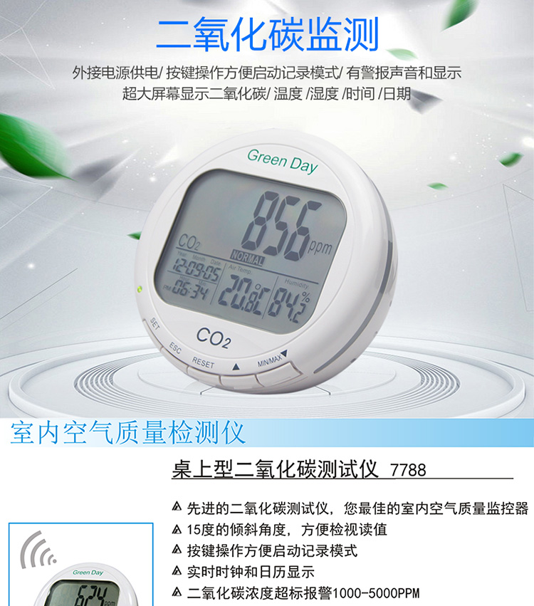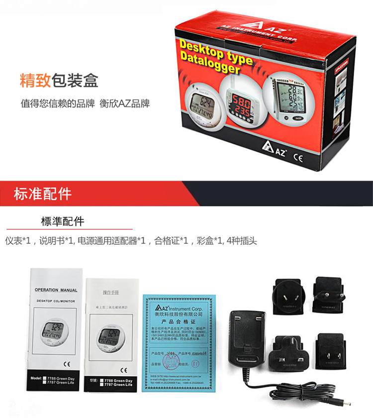 台湾衡欣 AZ7788 二氧化碳检测仪 空气质量测试仪 带温湿度显示