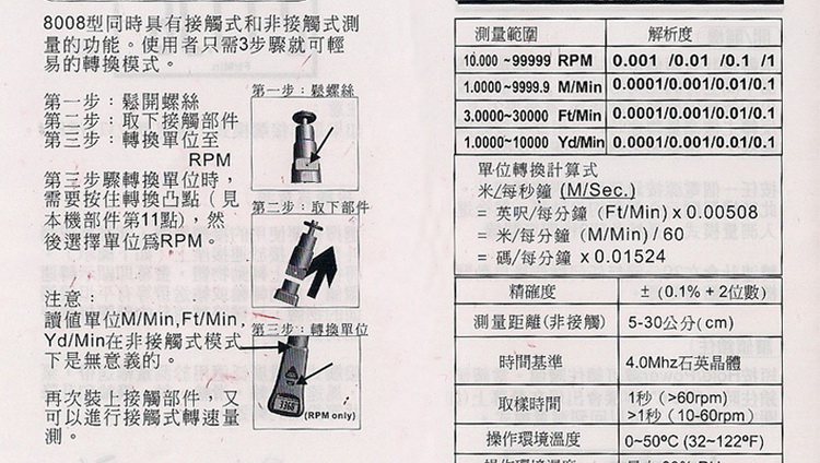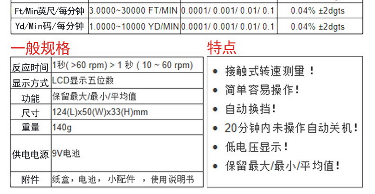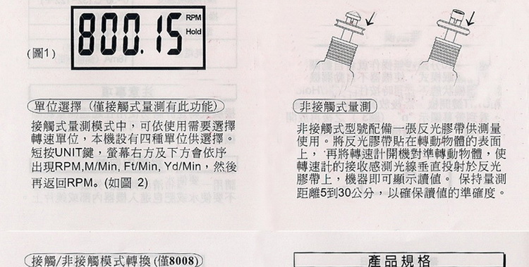 台湾衡欣高精度接触式转速计AZ8001 手持转速仪 表面速度测量转速
