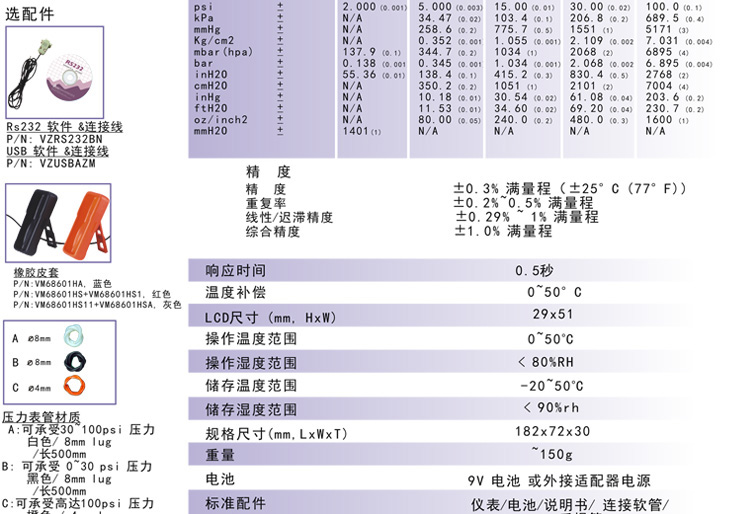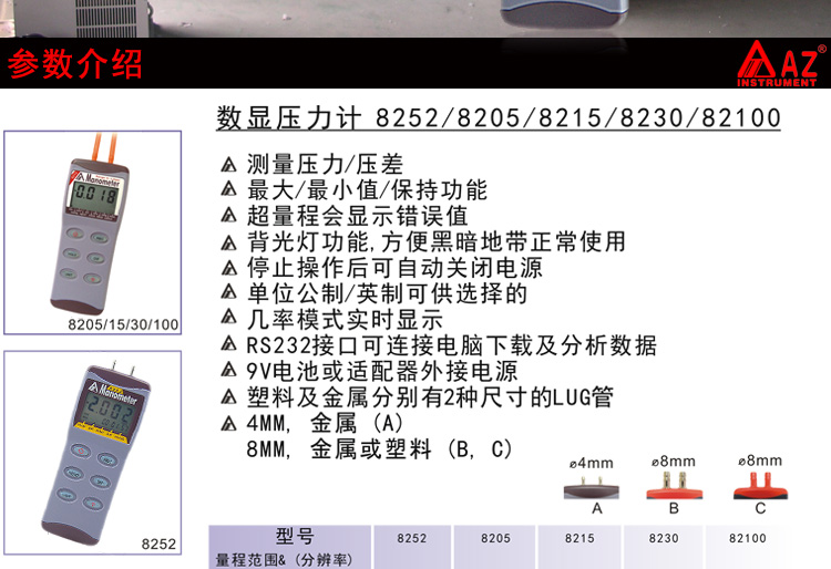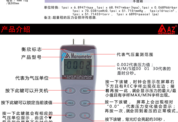 台湾衡欣压力计 数字压力计AZ8205 数字压力表 数显高精度差压仪