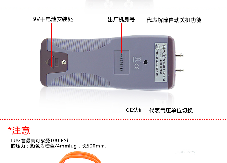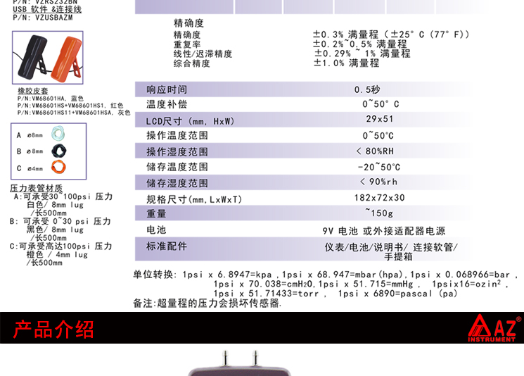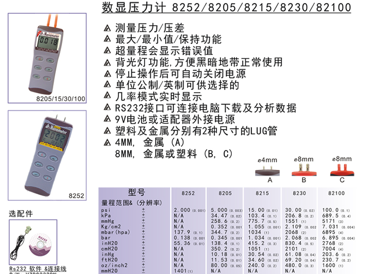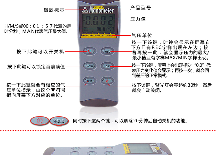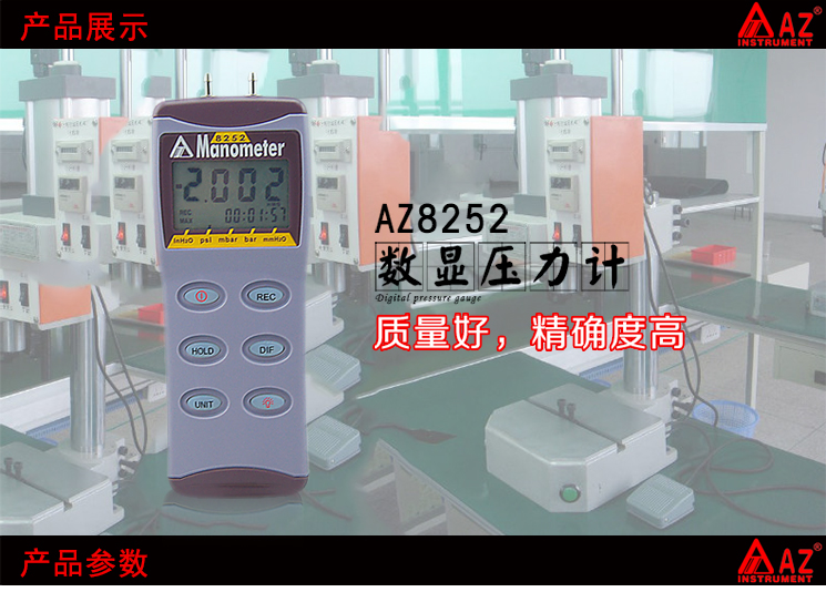 台湾衡欣AZ-8252高精度数显压力计 管道电子微压差计 数字压力表