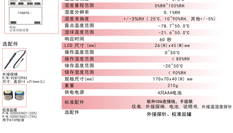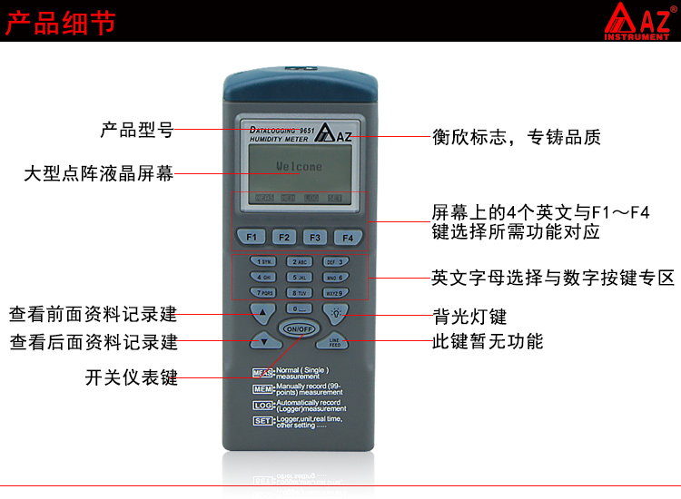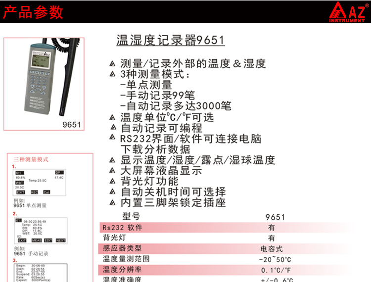 台湾衡欣 AZ9651便携分体式高精度温湿度记录仪多种测量模式