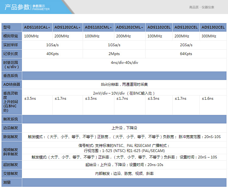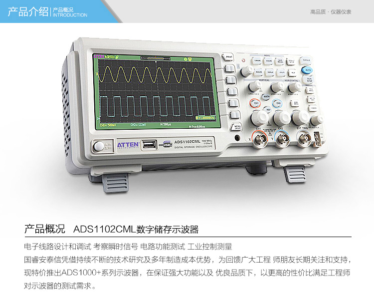 安泰信ADS1102CML双通道7寸彩屏/100M带宽/1G采样率/2M存储深度度