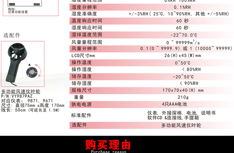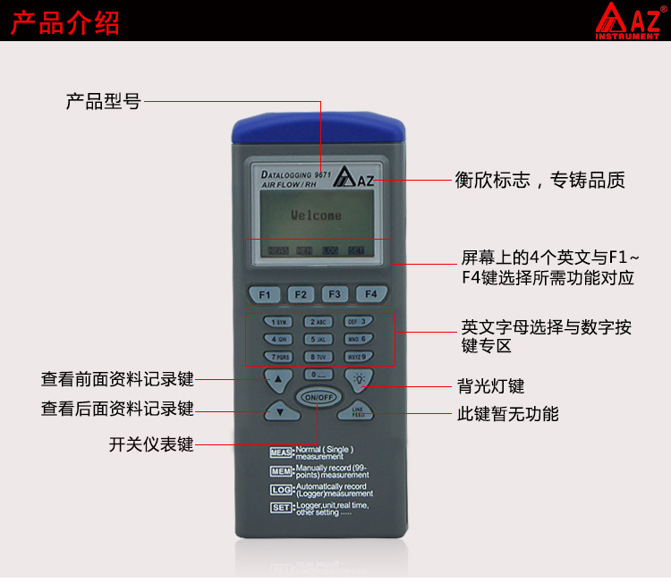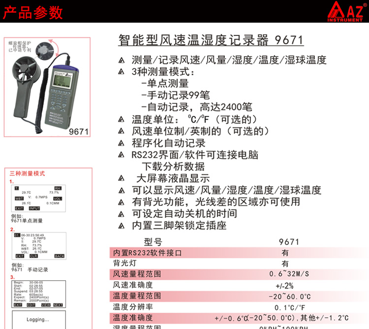台湾衡欣 AZ9671多功能风速温湿度记录仪器仪表 风速风量测试仪