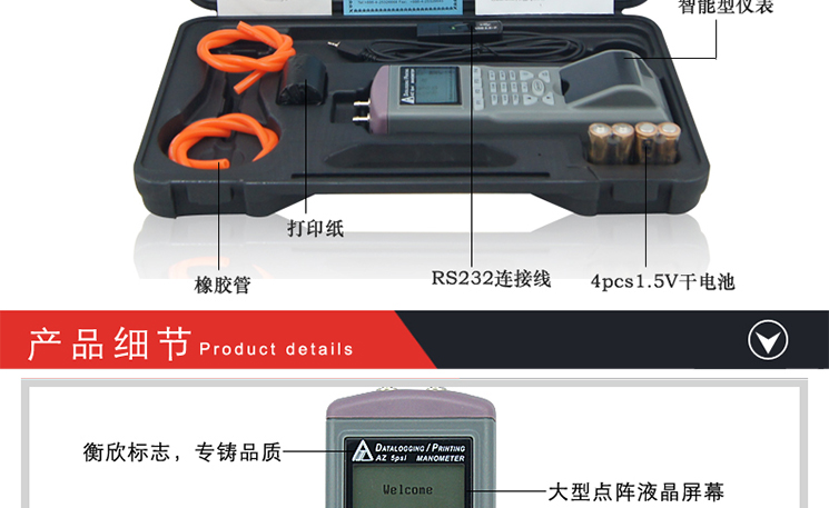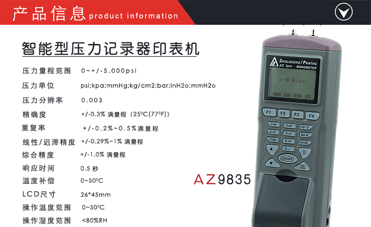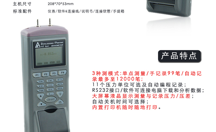 台湾衡欣智能列表打印式数字压力计压力表电子压力计压差表AZ9835
