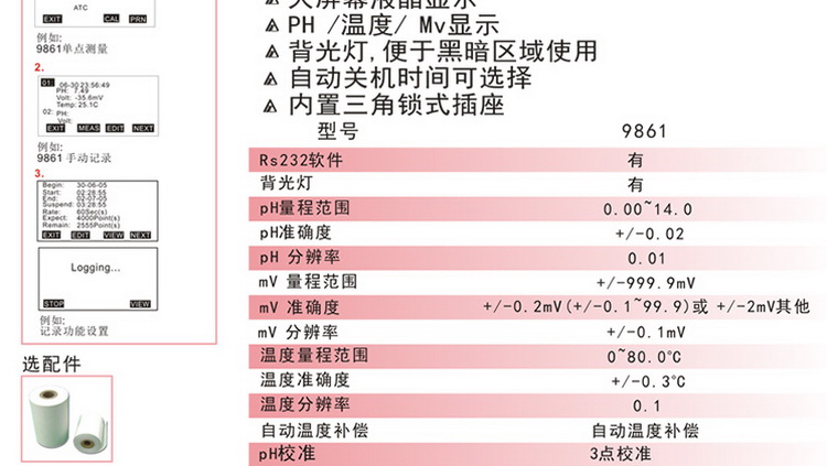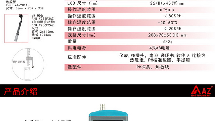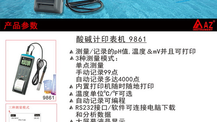 台湾衡欣 AZ9861酸度计记录仪 ph值测试记录仪 ph计印表机打印机
