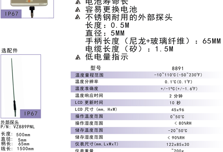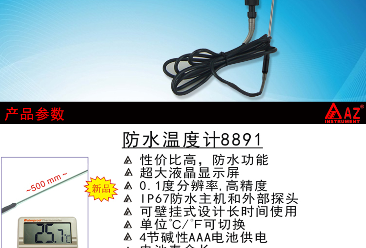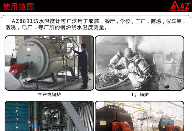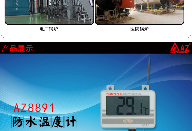 衡欣 AZ8891 工业用壁挂式锅炉防水温度计 测温仪 数显温度表