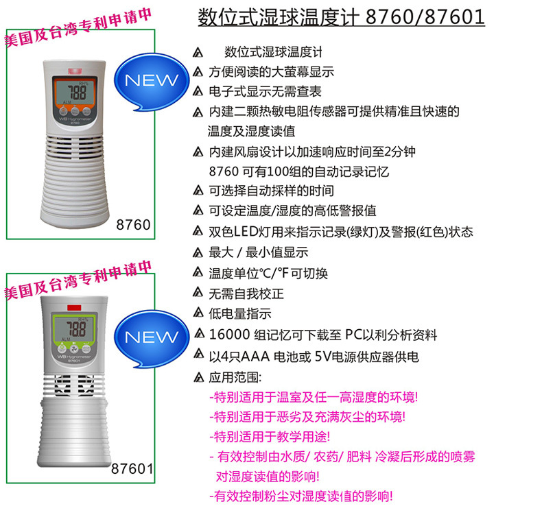包邮台湾衡欣 AZ8760数字干湿度计AZ-8760大棚温湿数字干球温度表