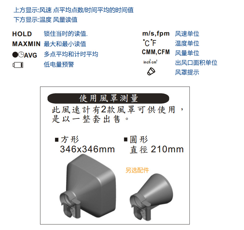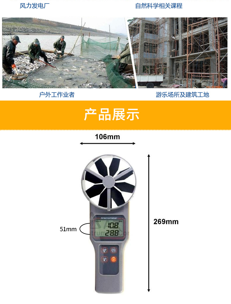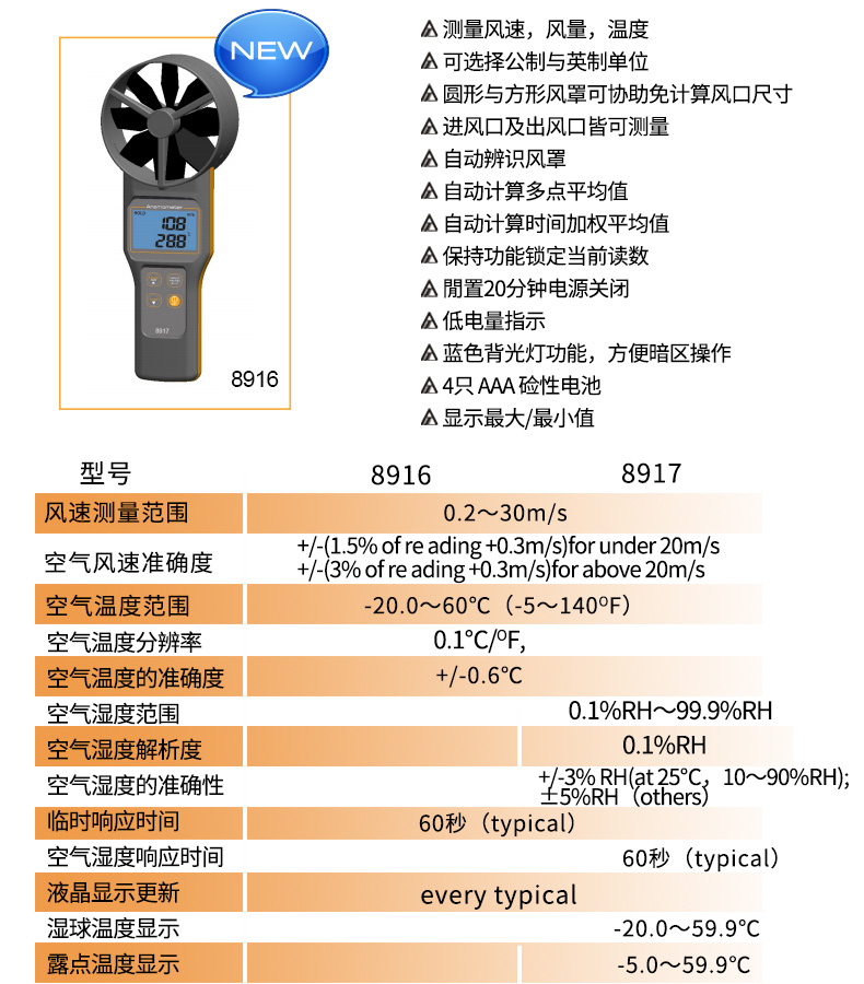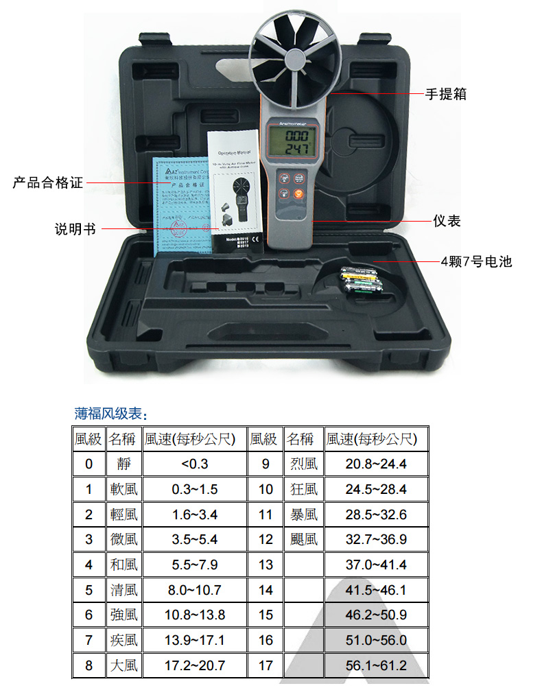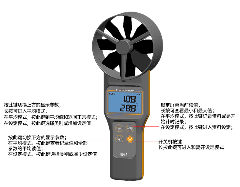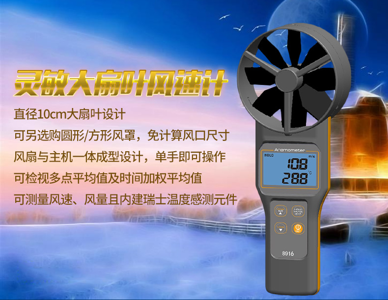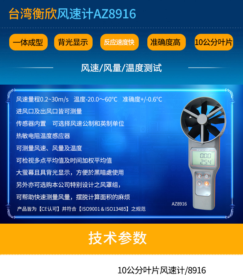 衡欣 AZ8916高精度风速仪 风速测量仪 可选配测量风罩 数字风速计