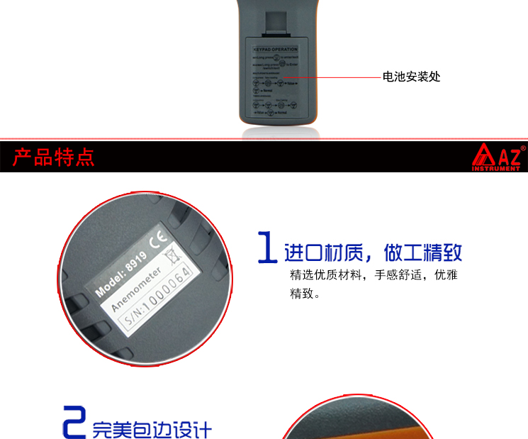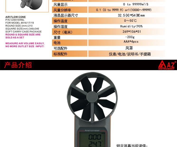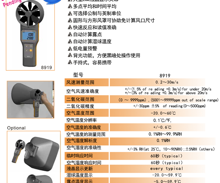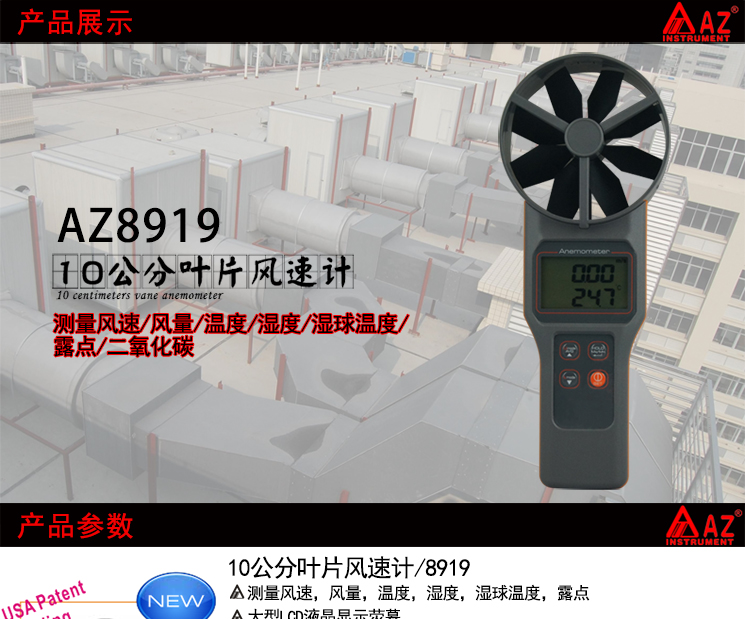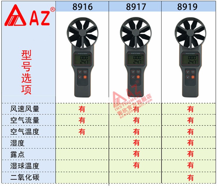 衡欣 AZ8919多功能风速仪 二氧化碳检测仪 温湿度湿球露点风速计