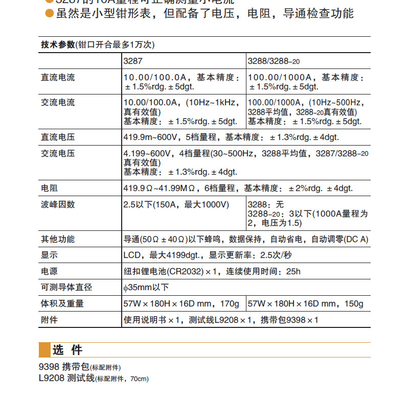 HIOKI/日置钳表3287 3288 3288-20交直流钳形表钳式电流表