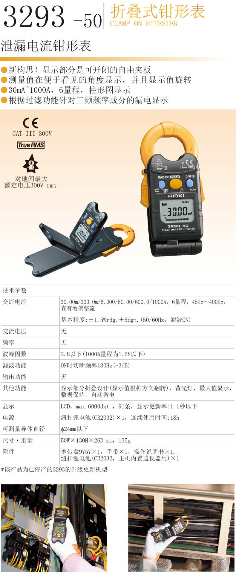 3293-50折叠式钳形表HIOKI/日置泄漏钳形电流表 真有效值钳表