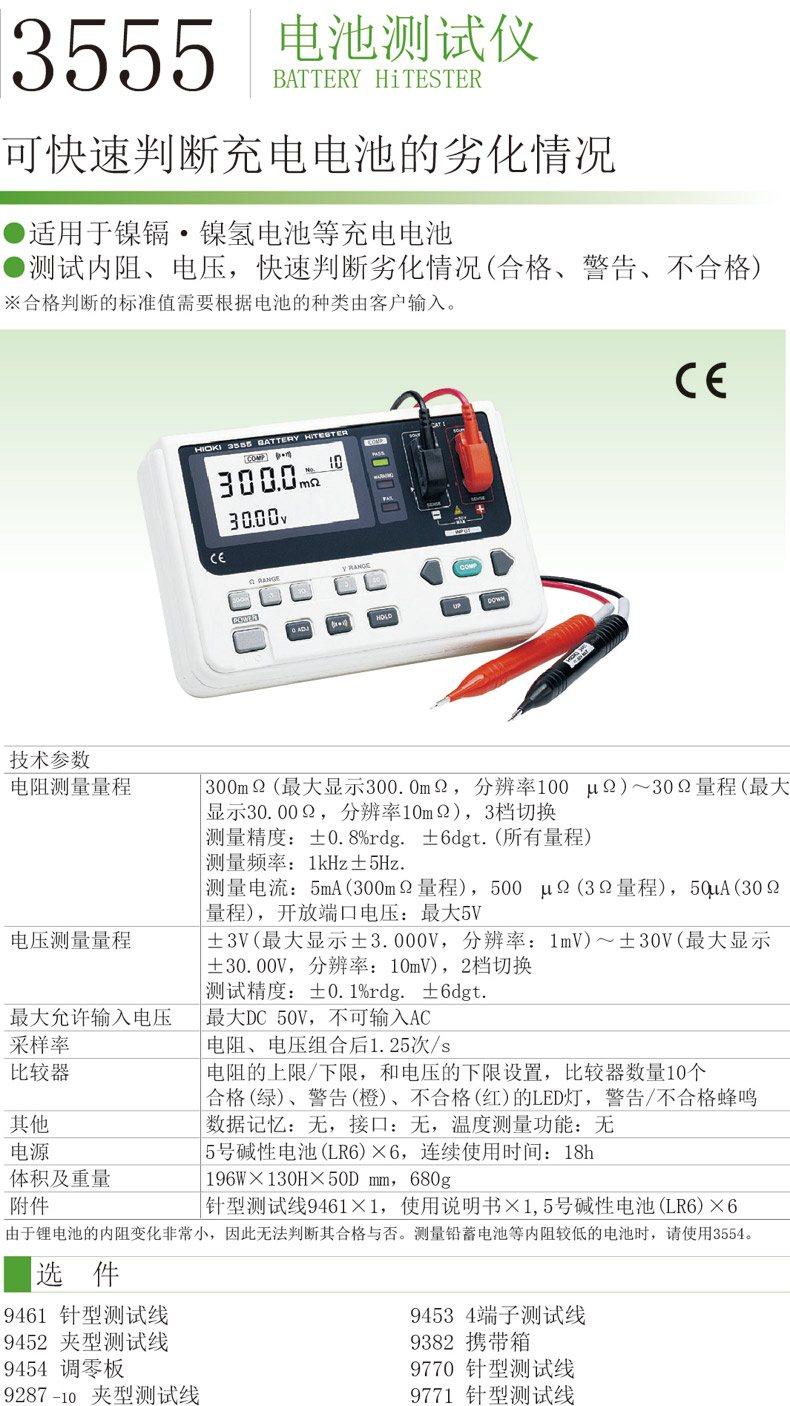 HIOKI日置3555电池测试仪 9465-10测试线 9465-90针头
