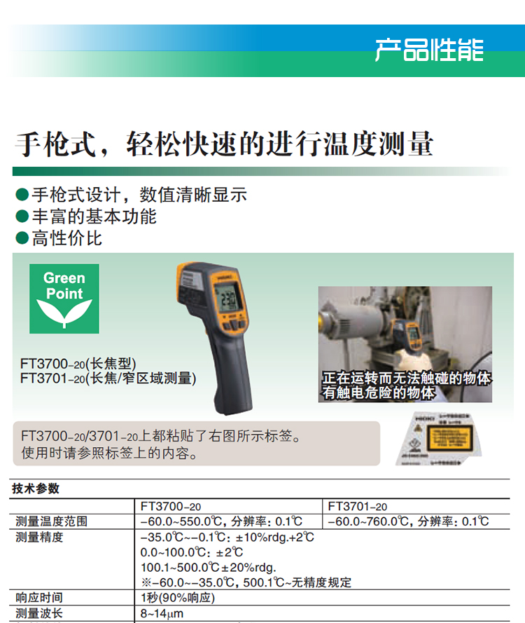 日本 HIOKI/日置测温仪FT3700-20/FT3701-20红外测温器 原装