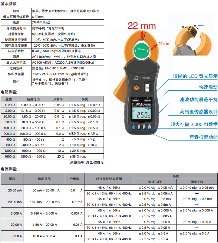 基本精度:±2.0%rdg ±0.05mA(30Hz ~400Hz,,真有效值整流),