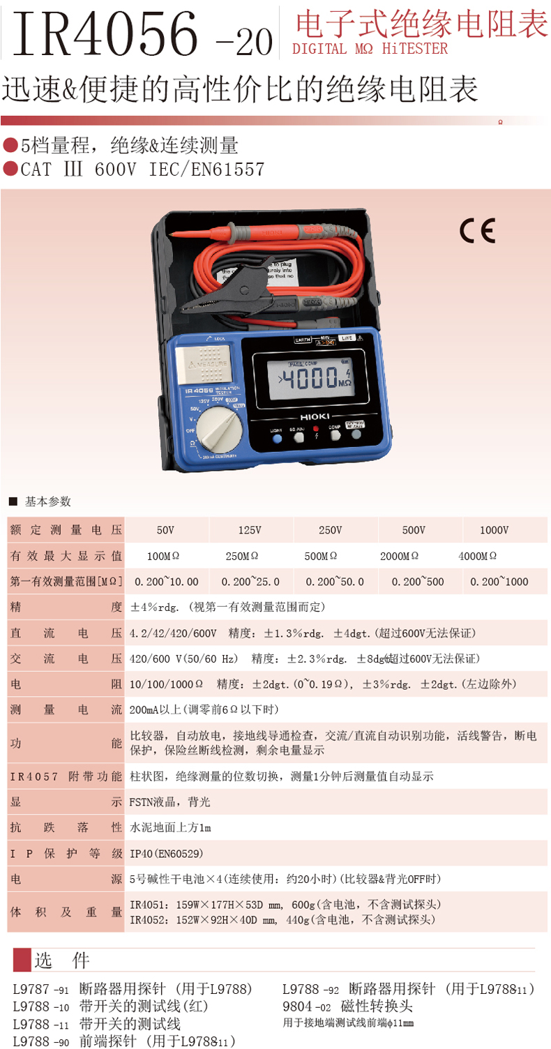 HIOKI日置IR4056-20/IR4057-20绝缘电子测试仪表