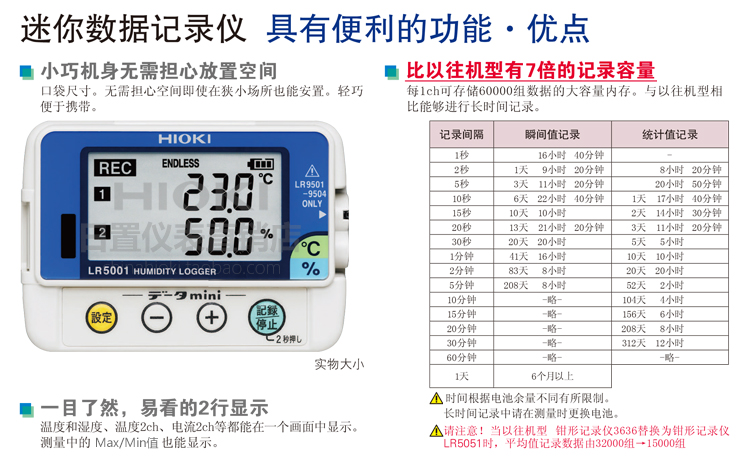 HIOKI日本日置温湿度记录仪LR5001/LR5011/LR5031无纸温湿度记录仪原装包邮