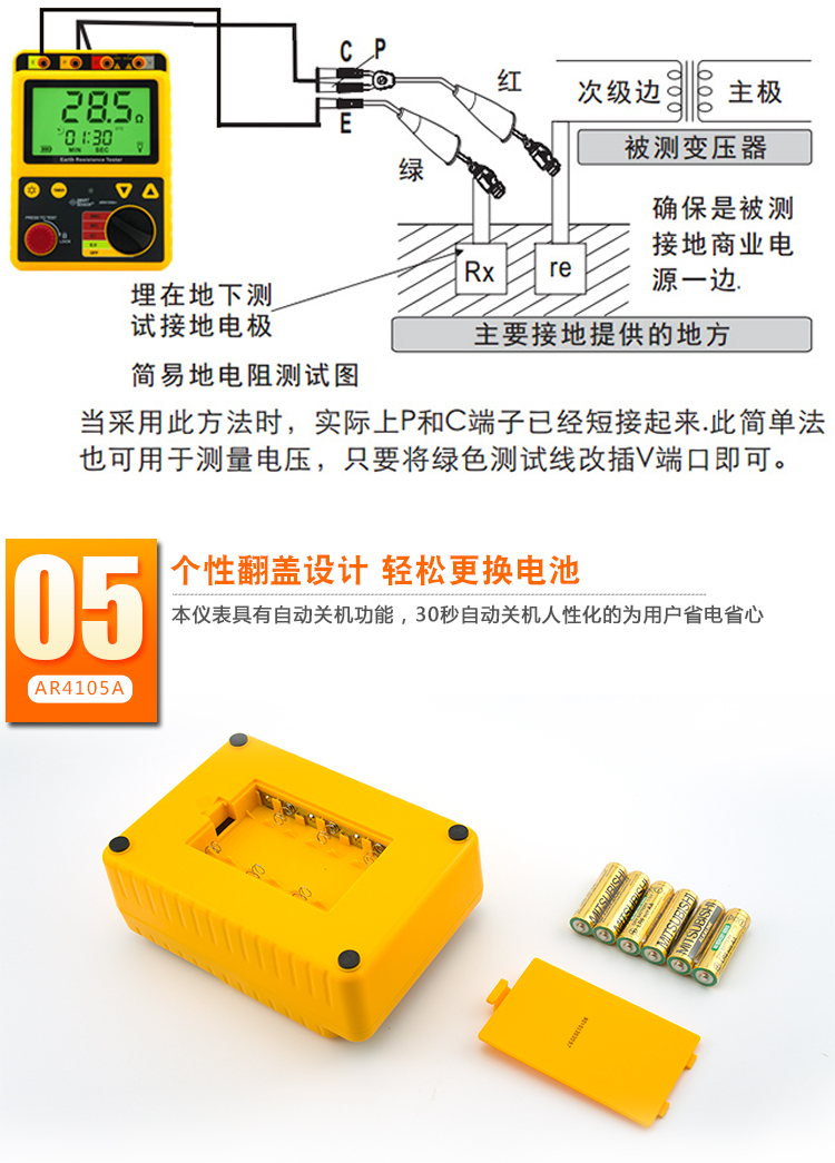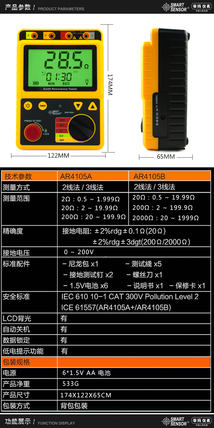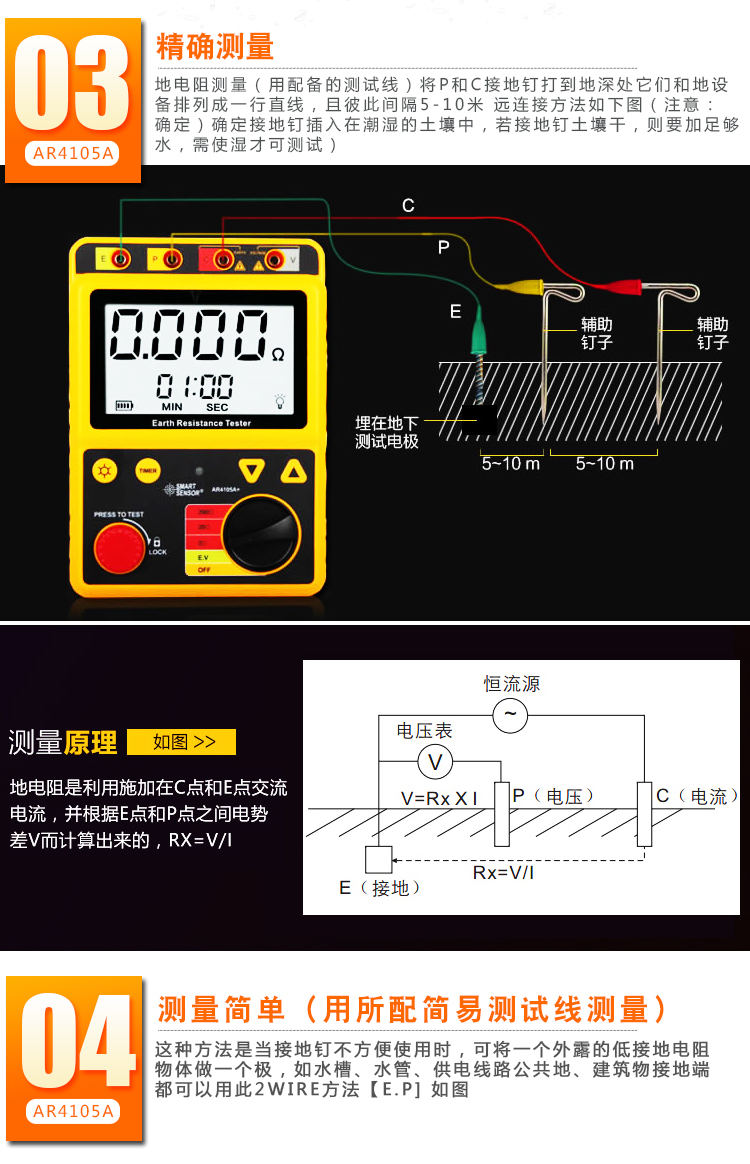 希玛AR4105A接地电阻测试仪表 防雷测试仪高精度