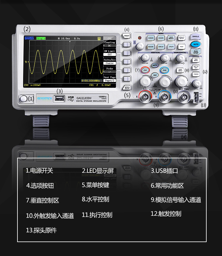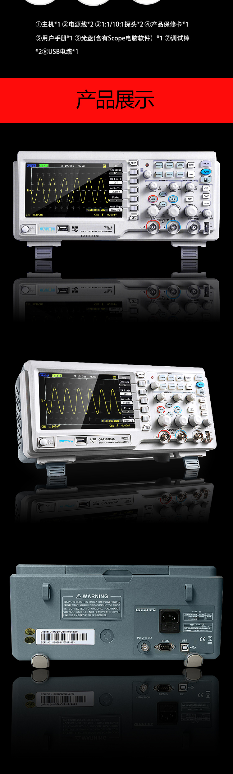 安泰信GA1112CEM示波器110M二通道数字储存示波器 GA1302CEM300M