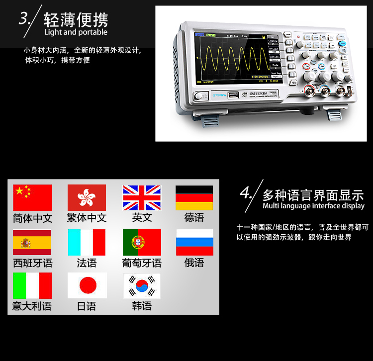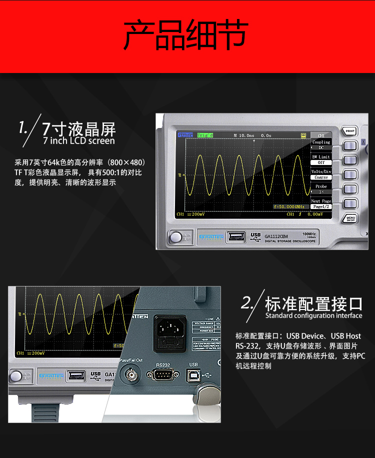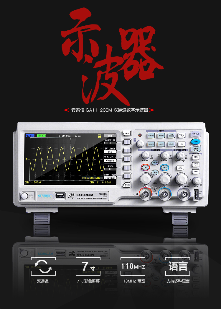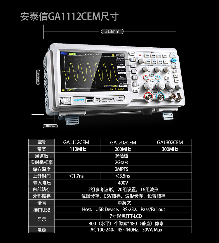 安泰信GA1112CEM示波器110M二通道数字储存示波器 GA1202CEM200M