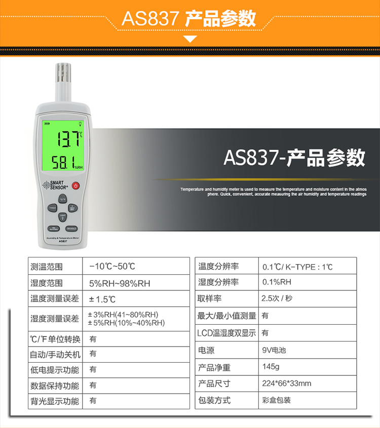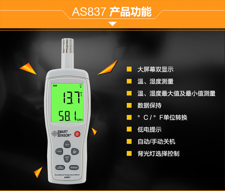 希玛AS837高精度数字温湿度计 工业用温湿度仪表室内温湿度检测器