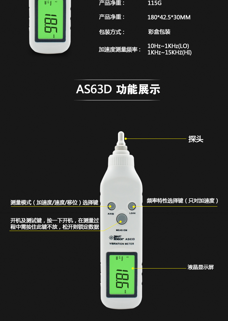 希玛AS63D笔式测振仪 测振笔 便携式测震计 振动振幅位移测量仪