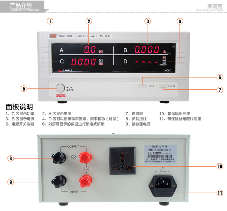 美瑞克 RK9800N 数字功率计 电参数测试仪 VA频率功能量