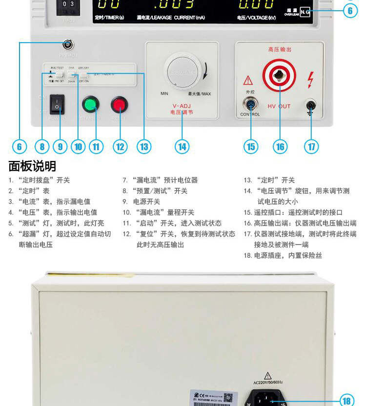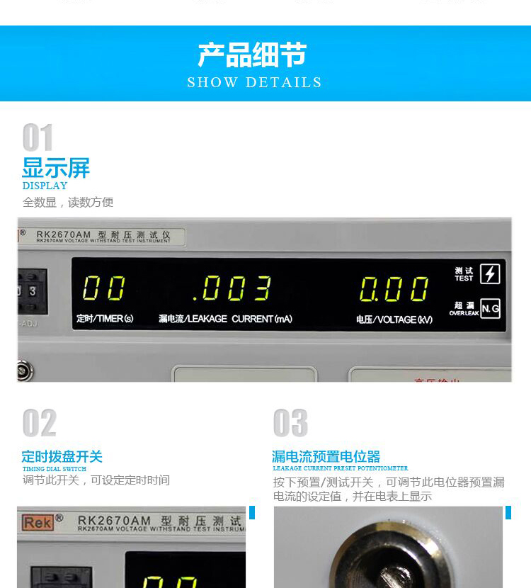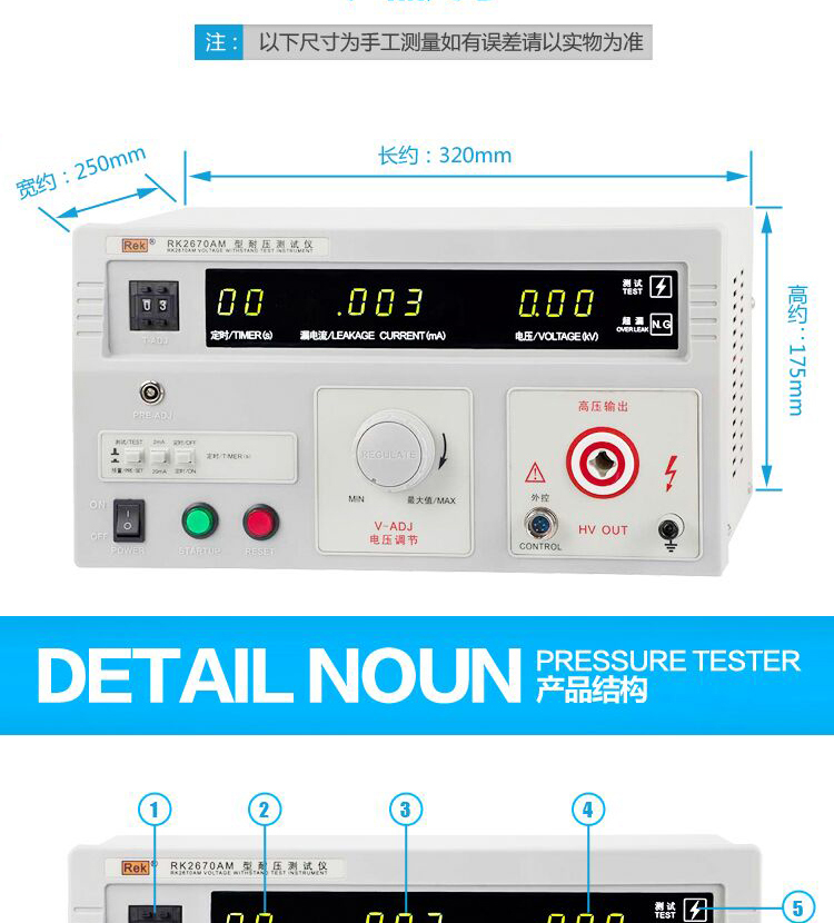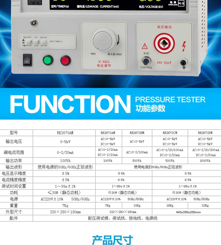 美瑞克耐压测试仪RK2670AM交直流耐压机测试仪 5KV 耐压仪交直流