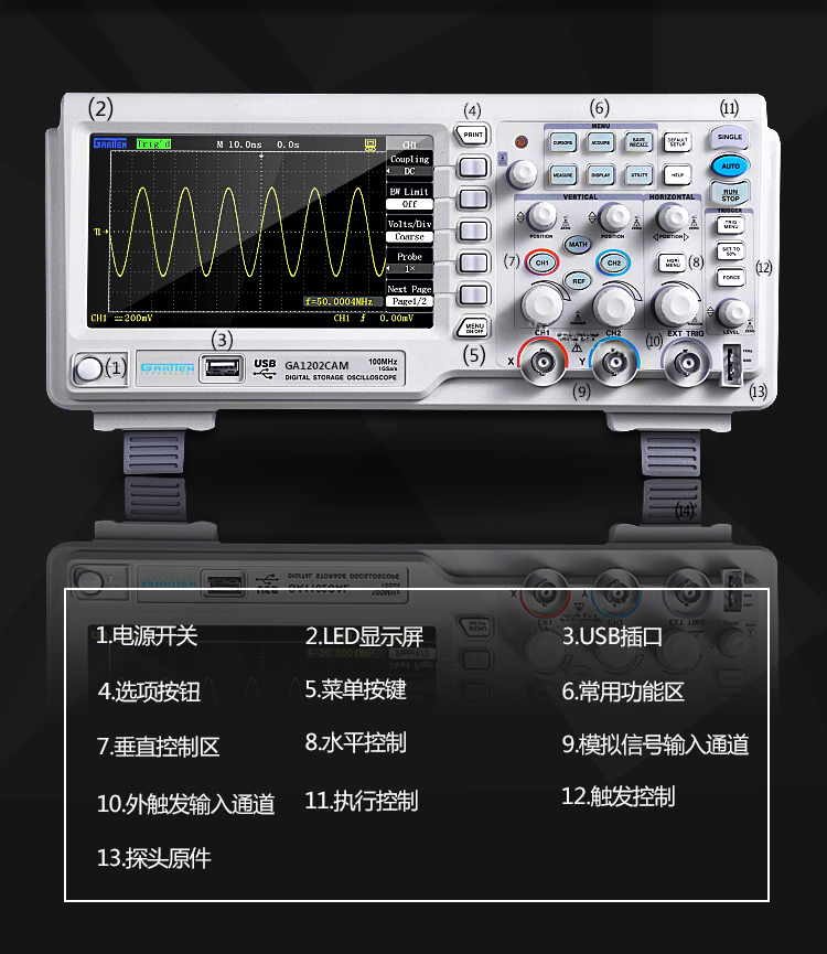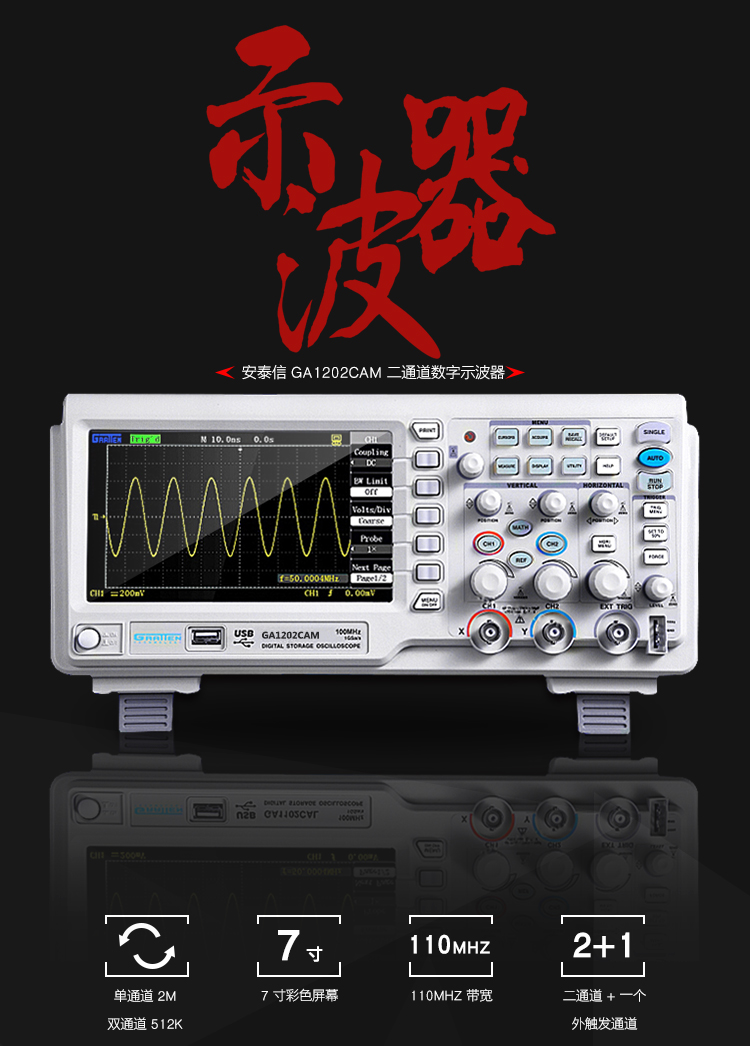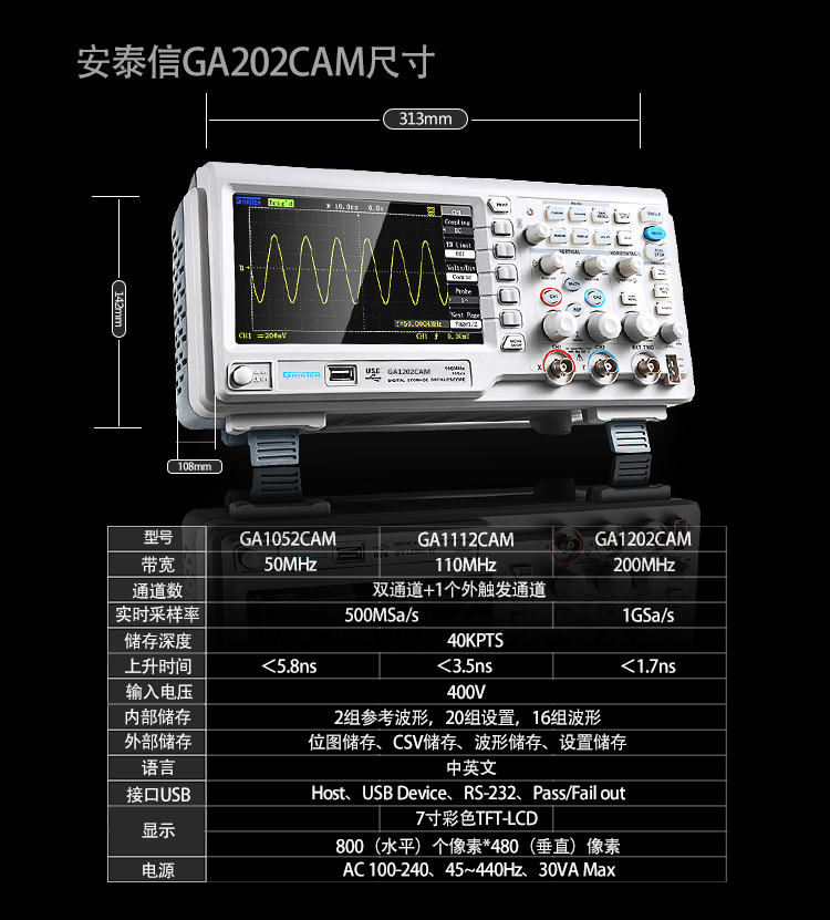 安泰信GA1202CAM示波器200M二通道数字储存示波器 GA1072CAM70M