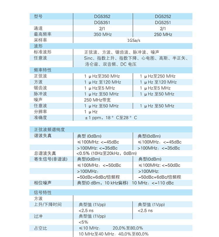 普源250M/300MHz函数任意波形发生器DG5251/DG5351