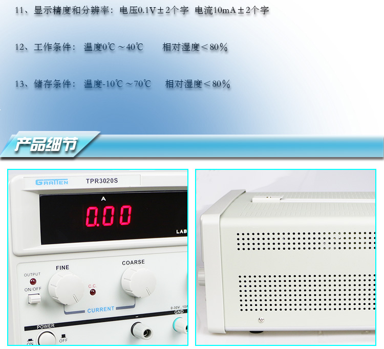 国睿安泰信TPR3010S/TPR3020S单路大功率恒压恒流直流稳压电源