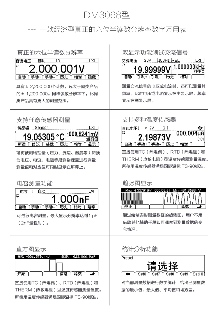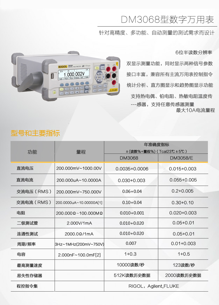 普源RIGOL 台式6位半双显数字万用表 DM3068/ DM3058 /DM3058E高精度万用表