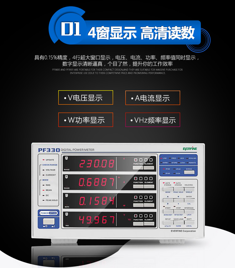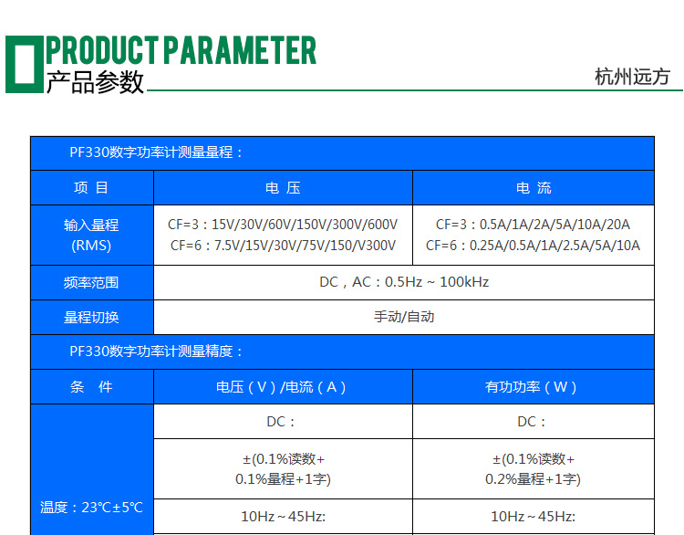 杭州远方PF330三相数字功率计高精度多功能交直流功率计0.05%精度