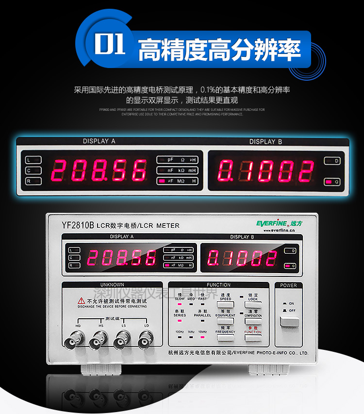 杭州远方LCR数字电桥YF2810B电容电感电阻测试仪10K元器件测试仪