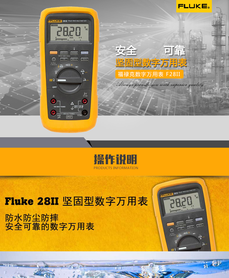 FLUKE福禄克F28-II工业数字万用表测1000V交/直流100A防水防尘