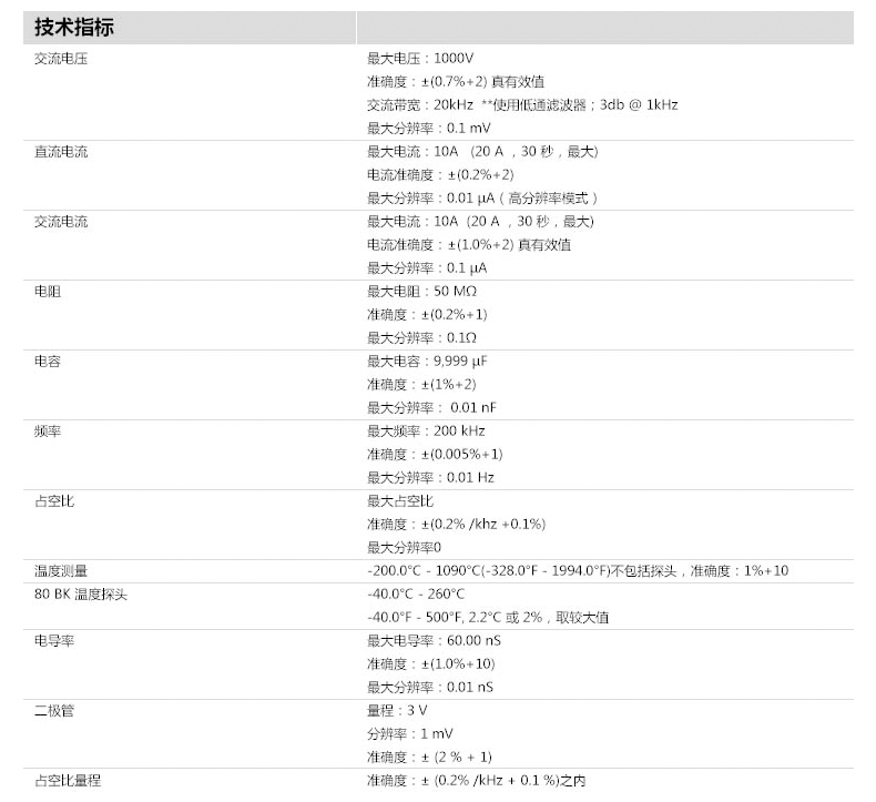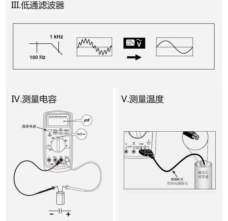 2、内置温度计,无需其它设备,就可以方便地读取温度值(87V/C)