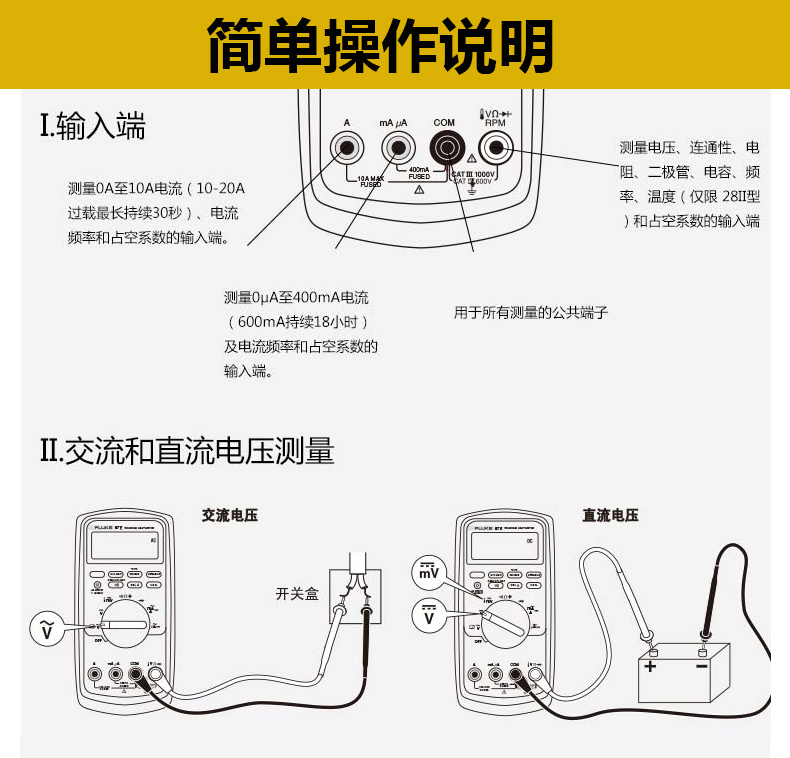 解释:在此之前,没有款多用表能够测量调速马达信号。但是,Fluke 87V/C专门针对由调速马达驱动产生的复杂信号进行了设计。再也无需猜测驱动系统的故障,将会获得潜在的生产力。每一测量和每次测量都无比。