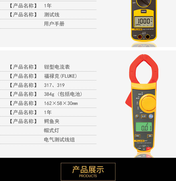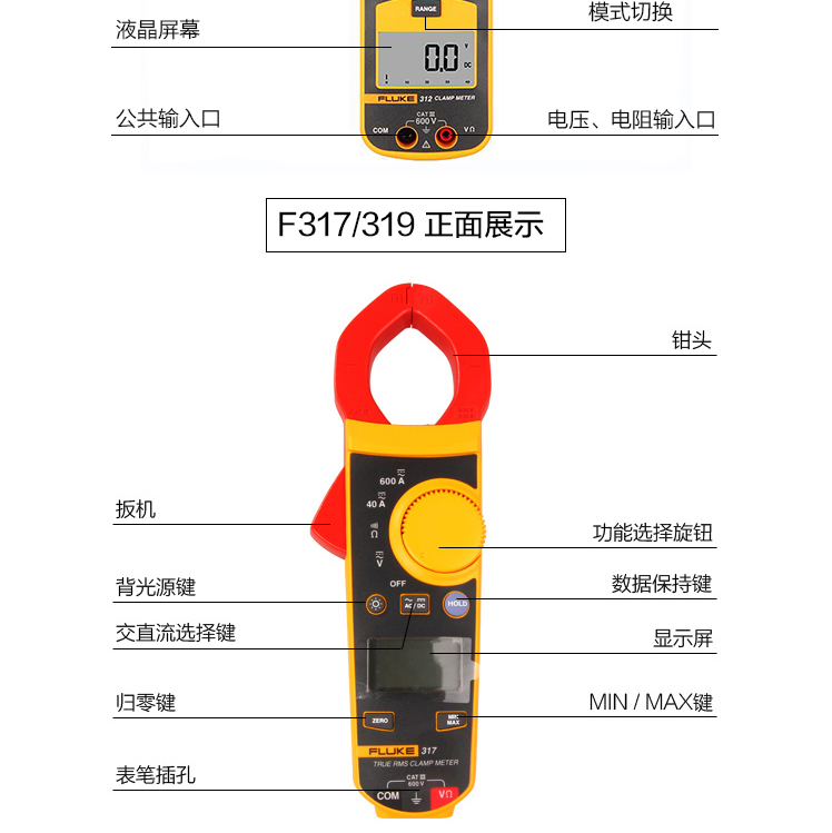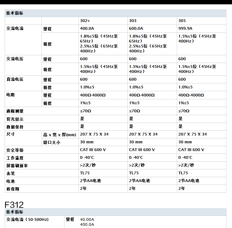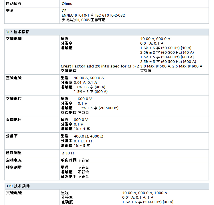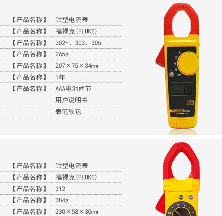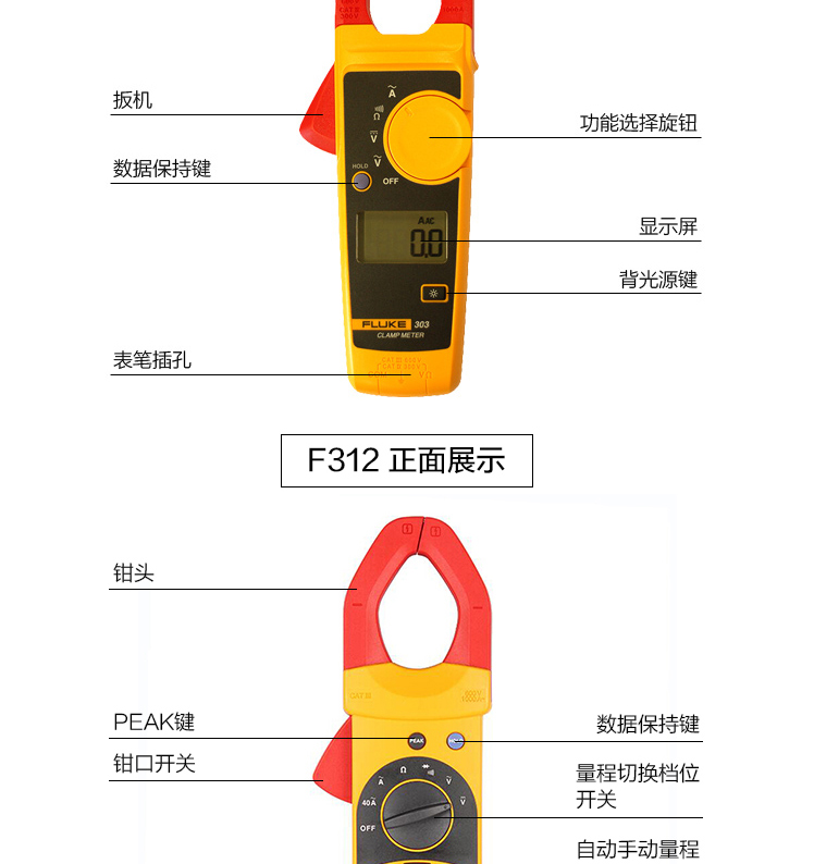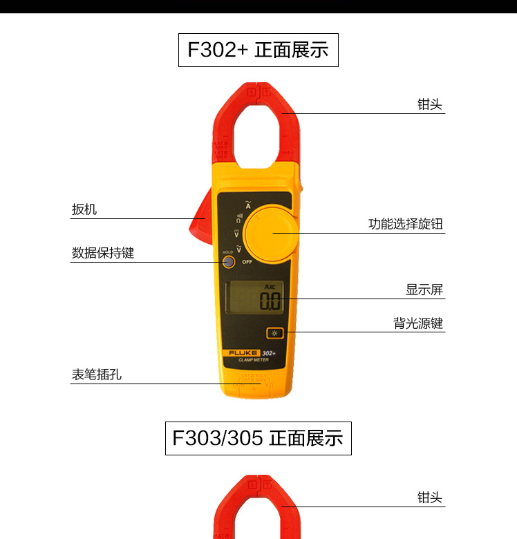 Fluke福禄克钳形交直流表F302+ F303 F305 F312 F317 F319